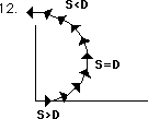 Below is a chart which indicates what happens when there is daily or regular corruption with no purification. The vector arrows represent the probability of behavior - as indicated in expression 9 above. The bottom half of the curve, S > D, is when there is a greater probability that the Person will choose behavior which expresses the Inner Self - whatever that means - perhaps the direct manifestation of Being uncorrupted by Thought.