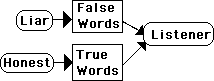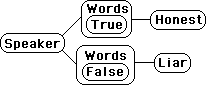 A Liar speaks False Words, while an Honest Person speaks True Words. Under this way of thinking the character of the Speaker becomes as important as the content of the words.