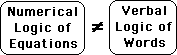 Before any progress can be made we must deconstruct the Logic Box that has been cultivated since Birth. If this cultural condition didn’t exist, there would be no need for this rebuttal and we could move right ahead. Instead we must clean up the room before we can put new furniture inside. Thus our first deconstruction was to say that the numerical logic of equations is not the same as the verbal logic of words.