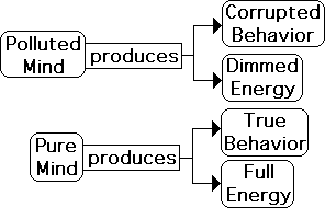Under normal circumstances, even the Polluted Mind can remain in a state of relative equilibrium. However, Life's circumstances inevitably evoke disturbing emotions from the Polluted Mind. This upsets the balance, increasing the probability of corrupted behavior. In contrast, the Pure Mind is much less likely to respond with the same destructive emotions.