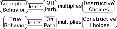 Corrupted behavior, by definition, leads us off the Path. The further we proceed on side paths, the more likely we will make destructive choices that are detrimental to fulfilling potentials. True behavior, by definition, keeps us on the Path or returns us to the Path. When we are on the Path, we are more likely to make constructive choices that maximize the potential for self-actualization.