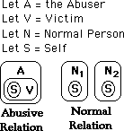 In effect the Abuser is attempting to bring the Victim into his sphere or his Group - so that the Victim will do his bidding. This relation is shown in the diagram below.