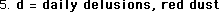 The small d represents the daily pollution. Note that it has no subscript. This lack of subscript indicates that the red dust (the cultural conditioning) occurs regularly, even though it comes in a variety of forms. The input is constant - rather than based upon a type of self-referential equation.