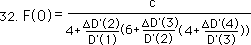 We combine terms with the common denominator of DÕ(3) in the most rightward expression in the denominator. The DÕ(3) denominator cancels out with the previous numerator. We then combine the middle terms with the denominator of DÕ(2). This then cancels out with the preceding numerator. Next we combine the left most terms in the denominator by combining with DÕ(1). Multiplying the top and bottom of the right side of the equation by DÕ(1), using the identity principle, we obtain the following equation.