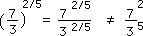 ÒWhy, of courseÓ, the Reader might think. ÒWhatÕs so unusual about that?Ó For one, fractional roots do not behave and are never treated is such a fashion with ordinary numbers. For instance the 2/5 root of 7/3 has no relation whatsoever to 7 squared divided by 3 to the fifth power.