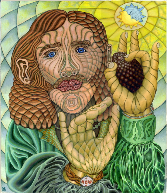 This site was set up to share my creations with humanity. Below is my self portrait. In the right hand corner of the painting is my Muse.
