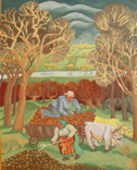 Perhaps the hoopla of marriage in December 1974 upended my creative pulse. Perhaps the intensity of the creative process, the lack of control. Painting has always been like childbirth for me – an excruciating, uncertain process, where I am out of control. Eventually completed the painting, Raking Leaves, over a year later, in the Summer of ’76 – another breakthrough, which has always motivated my art, and given me the hope that I will eventually complete my old projects (certainly an inspiration for this project).