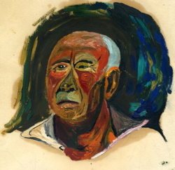 Winter ’72 did some oil sketches – mostly faces – only 3 (still in college at UCSB). Blown away by how easy it was – how naturally it came. But thought that anyone could do it. Never even showed these to my teacher until much later on. Upon viewing these sketches he said, "I've ruined you. Why didn't you show these to me before?" Still didn't show these primitive, unrefined outbursts of art to anyone else either - until nearly 40 years later – at which time daughters, friends and wife had a similar reaction to my teacher. "My favorite." – "You should have them framed." – "The spontaneity surpasses all your labored paintings." Each took just a few hours - maximum to execute. Just threw myself at the construction paper with the oils - no understanding whatsoever. I had, and still have, no idea what I'm doing.