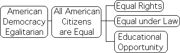 We are certainly taught that ‘all men are equal’. In our political system, all American citizens presumably have the same rights and are treated equally under the law. Further, everyone is provided the right to an education. Although there are certainly inequities, this equality is the avowed intent of our democratic system. This presumed equality suggests that the egalitarian Tribal Model is definitely applicable to the American Democracy in terms of basic human rights, education and justice.