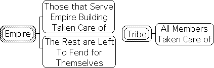 Many, if not most, Americans view our Democracy from the Tribal Perspective. We believe that we are equal and should help each other out to the limits of our ability. In contrast, a dominant percentage of the Ruling Class perceives the United States as an Empire. The notion that America is an Empire rather than a Tribe has some major ramifications.