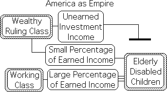 The lack of responsibility of the Wealthy for the less fortunate members of society certainly reflects the Empire Model. Only concerned with building their personal Empires, whether political or financial, the Ruling Class accumulates massive fortunes and attempts to increase personal power. Further, these endeavors are frequently at the expense of the Working Class. As in the Empire model, the Working Class only exists to serve the purposes of the Ruling Class. The Social Security System reflects these hidden motives.