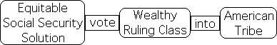 So what is the solution? There are actually 2 basic solutions. The simplest solution and most palatable to the Ruling Class is to recognize the real financial nature of the Social Security System and treat it accordingly. The only problem with this solution in terms of the Ruling Class is that funds will be drawn from Empire-building and instead spent upon the Welfare of Deserving Members of the American Tribe. Horrors! The advantage to this solution is that it doesn't require that the Rich contribute their fair share.