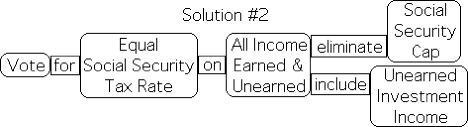 What does this mean? Vote for a flat Social Security tax that applies to all Income equally. In other words, vote to abolish the Income Cap. Vote to abolish the exemption on Unearned Investment Income.