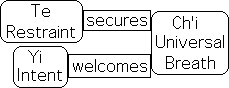 This verse indicates that te and yi have a complementary relationship. By both restraining and guiding, te and yi are able to attract ch’i. This process is not simultaneous, but is instead based upon alternation. Further there is a bit of each in the other that tends to moderate the extremes. Intention (yi) guides the focus of restraint (te) and te moderates the potential obessiveness of intention (yi).