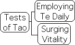 Both Tao and te include radicals that indicate an ongoing process rather than a state of being. Tao, as the Way of ideal self-cultivation practices, includes regularly exercising te, our self-restraint muscle, to shape our innate tendencies, hsin, in order to remain on the Path.