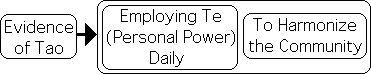 The Great Learning, a classic Chinese text, provides us with yet another way of viewing the relationship between Tao and te. From the perspective of this brief document, an essential feature of the Way (the Tao) is exerting te (personal power) to harmonize the community. Put in the context of this verse, working regularly to bring peace and balance in our world is evidence that the Tao is flowing through us. We will examine this document in more detail in subsequent chapters.