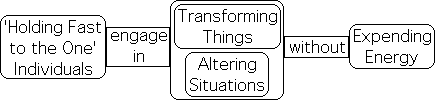 Only individuals who ‘hold fast to the One’ are able achieve these changes without losing ch’i or expending wisdom. These lines imply that it is possible to ‘transform things’ and ‘alter situations’ without using any energy, both physical (ch’i) and mental (wisdom). In order to expend a minimum of energy, we must engage in the self-cultivation process of ‘holding fast to the One.’ What does this mean?