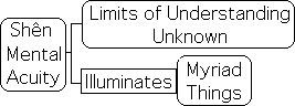 The understanding seems to be of a particular type. Roth translates the first character in line 2, chao, as ‘intuitively’. From this perspective, shên is associated with intuitive knowledge.