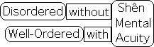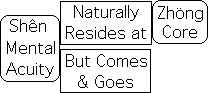 We definitely want shên to remain within us. When in our core (zhöng), shên is an organizing force. When it leaves, we inevitably become disorganized. Shên seems to be an essential component of a well-ordered, i.e. balanced, life.