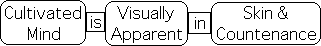 ‘Completed mind’ is another plausible translation of ‘unimpaired mind’ from line 1. Having completed the cultivation process, hsin has all the positive attributes from prior verses, i.e. well-ordered, tranquil, stable and aligned. Others can perceive this cultivated mind through appearance alone.