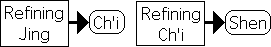 Refining and preserving jing results in transforming water into steam. Jing becomes ch’i, as it ascends from the lower tan tien (energy nexus) in the abdomen to the middle tan tien in the chest. As the refinement process continues, ch’i turns into another type of steam and ascends to the head as shên. In such a manner, concentrated, i.e. refined ch’i becomes shên.