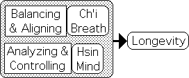 Under this perspective, the harmonizing path includes two processes – 1) balancing and aligning ch’i (our breath) and 2) analyzing and controlling hsin (our thoughts and emotions). This path presumably harmonizes jing and the body, which results in vitality and longevity.
