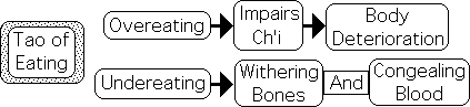 The verse begins by describing the negative consequences of an excessive relationship to consumption. Over-eating impairs ch’i flow and causes the body to deteriorate. Under-eating causes the bones to wither and the blood to congeal.