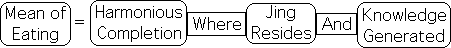 These lines describe the advantages of attaining a balance with regards eating. The mean between these two extremes is called ‘harmonious completion’. This is where jing resides (our inner spirit house shé) and knowledge is generated.