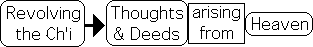 This indirect approach to behavior permeates the Nei-yeh. The implicit belief is that delineating right and wrong behavior won’t help, if hsin, the heart mind, is corrupted. Proper ‘thoughts and deeds’ are instead founded in maintaining the Tao, the ideal self-cultivation practices, which include ‘revolving the ch’i’.