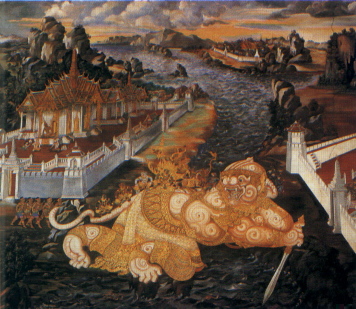 Remember the Ramakian is the story of Rama rescuing his wife from the demon Ravana (the King of Longka in the Thai version) who has captured her.