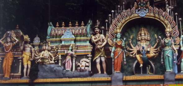 Lord Murugan is especially revered by the Tamil Indians. He is also called Lord Subramaniam and the 6 faced one, because his increased awareness allows him to face all directions. The worship of Lord Murugan is said to cure incurable diseases and restore vitality. When we were there they were in the process of constructing the largest stature of this god in the world.